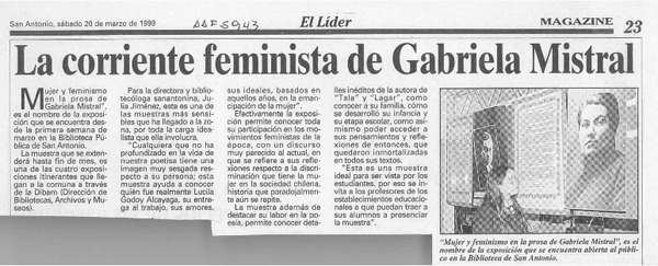 Recuerdan a Gabriela en el Departamento de cultura [artículo]