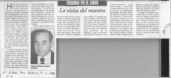 La visita del maestro [artículo] Jaime Gómez Rogers.