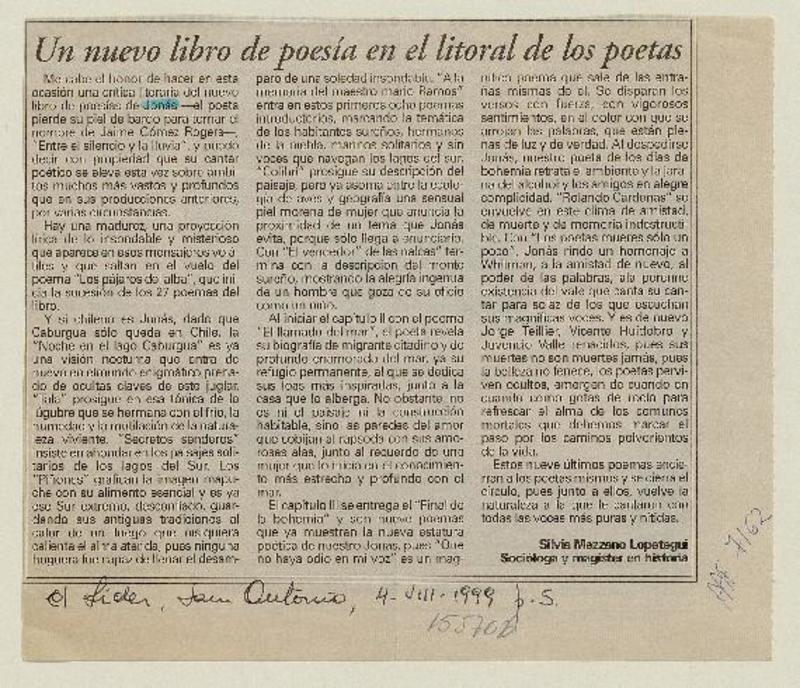 Un nuevo libro de poesía en el litoral de los poetas [artículo] Silvia Mezzano Lopetegui.