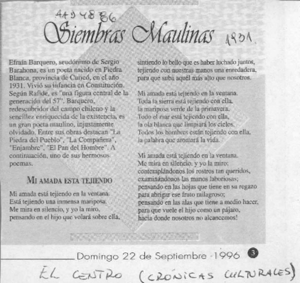 Un poeta maulino [artículo] Aída Ester Mora.