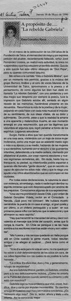 A propósito de -- "La rebelde Gabriela" [artículo] Rosa González Baeza.
