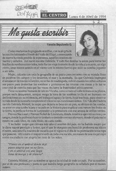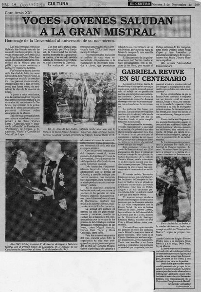 Voces jóvenes saludan a la gran Mistral [artículo].