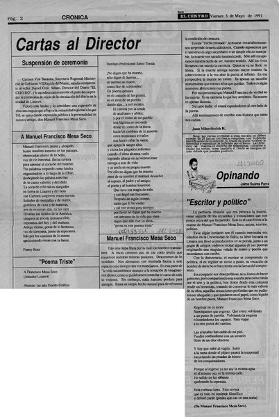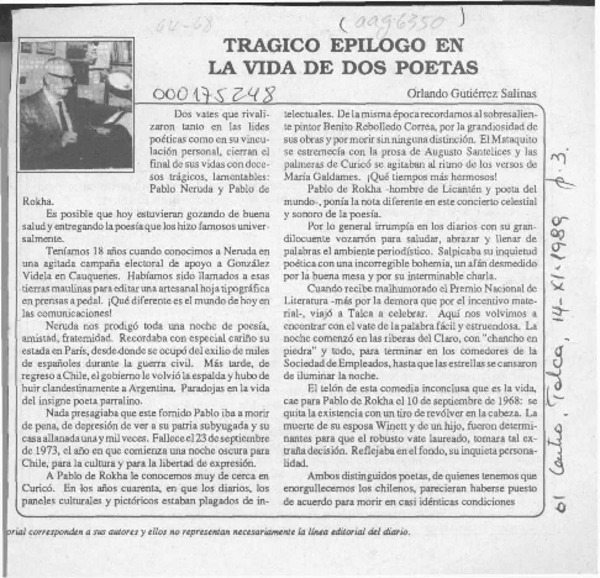 Trágico epílogo en la vida de dos poetas [artículo] Orlando Gutiérrez Salinas.