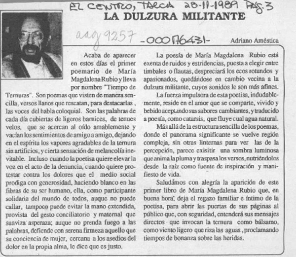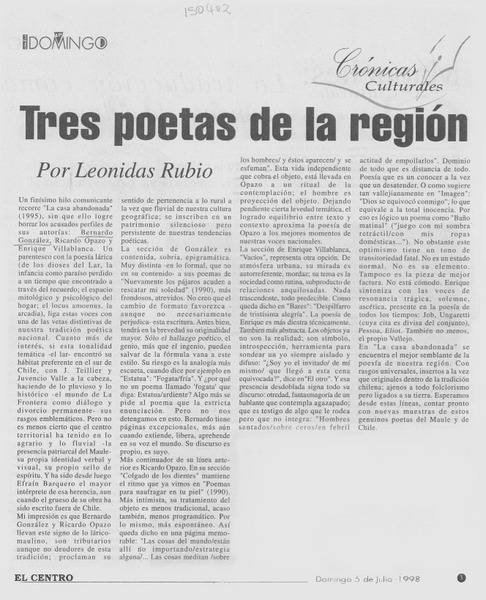 Tres poetas de la región [artículo] Leonidas Rubio.
