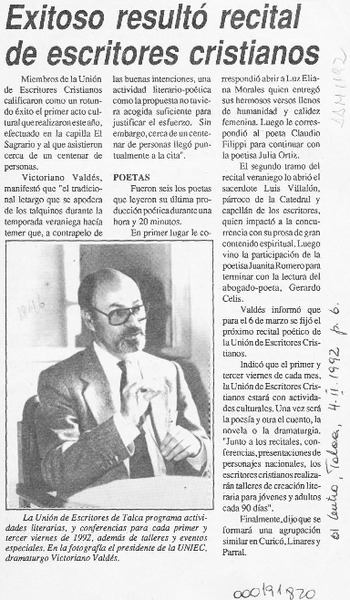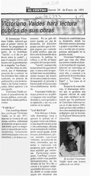 Victoriano Valdés hará lectura pública de sus obras [artículo].