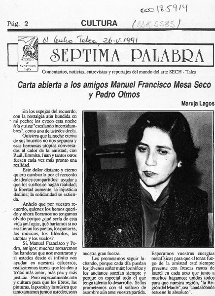 Una poetisa en el recuerdo, María Ruiz Martínez (1901-1988) [artículo] Edison Marcel Salgado Galaz.