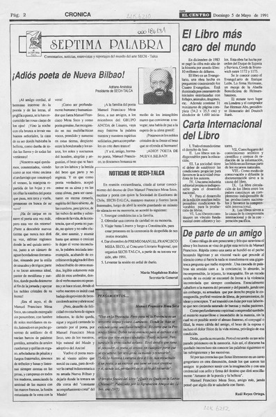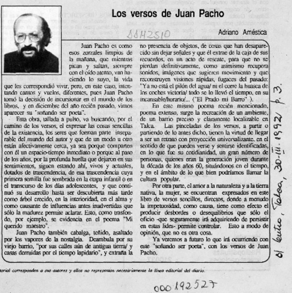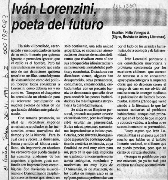 Adiós poeta de Nueva Bilbao! [artículo] Adriano Améstica.