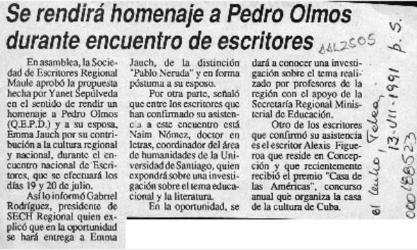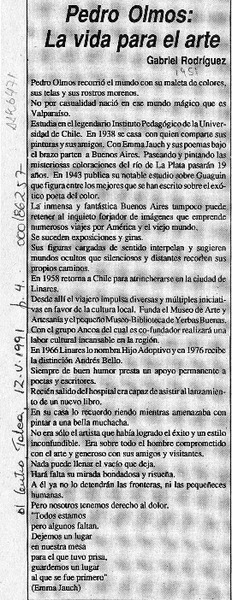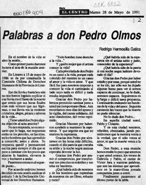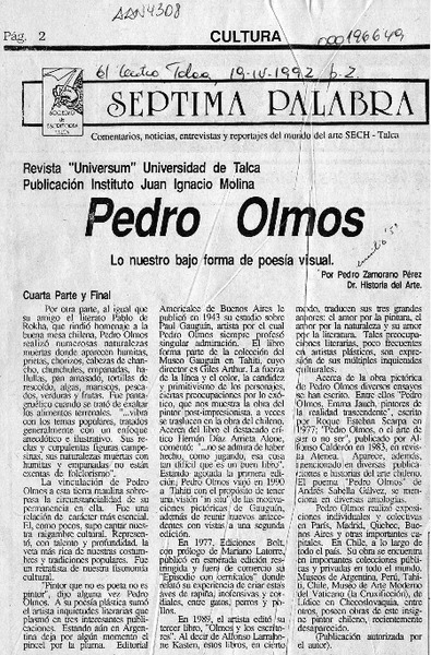 Adiós a Pedro Olmos [artículo] José Ilic Toro.