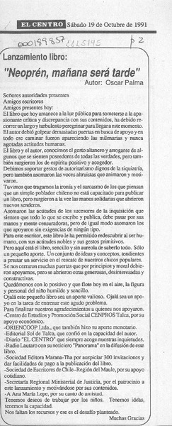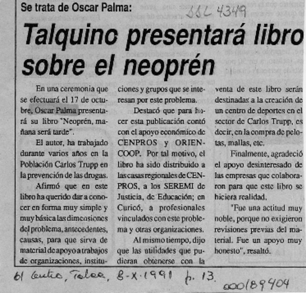 Talquino presentará libro sobre el neoprén [artículo].