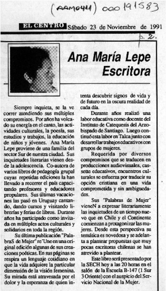Ana María Lepe escritora [artículo].