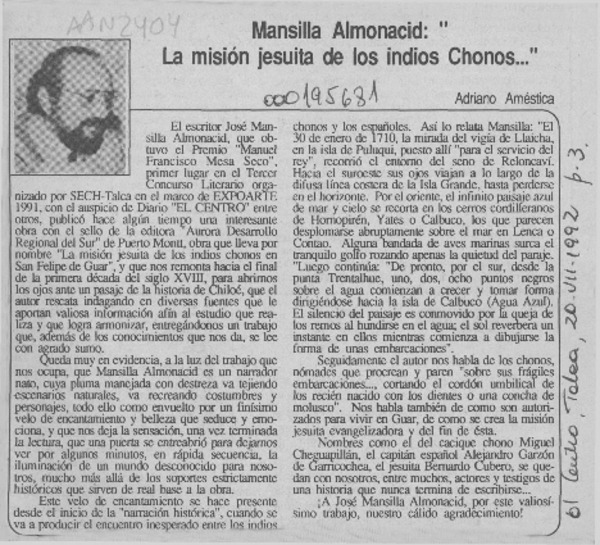 Adrián Mancilla, poeta y profesor [artículo] Adriano Améstica.