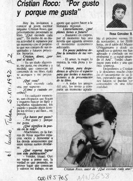 A propósito de -- "me gusta escribir" [artículo] Rosa González Baeza.