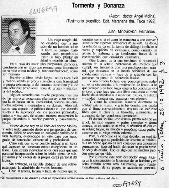 Tormenta y bonanza [artículo] Juan Mihovilovic Hernández.