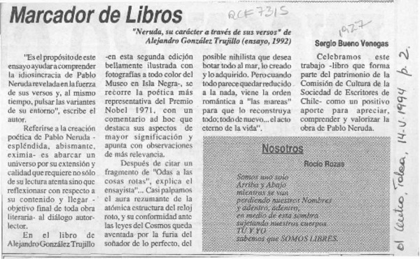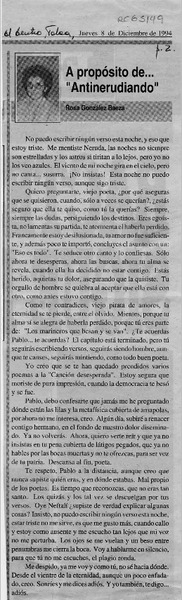 A propósito de -- "Antinerudiano" [artículo] Rosa González Baeza.