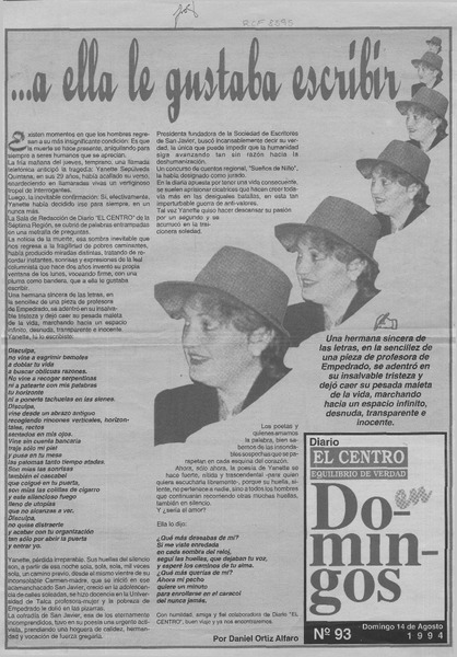 -- A ella le gustaba escribir [artículo] Daniel Ortiz Alfaro.
