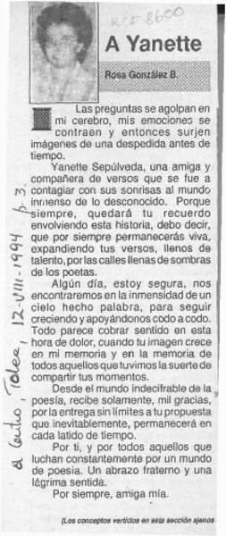 A Yanette [artículo] Rosa González B.