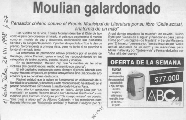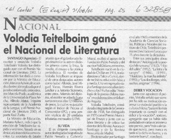 Volodia Teitelboim ganó el Nacional de Literatura [artículo]