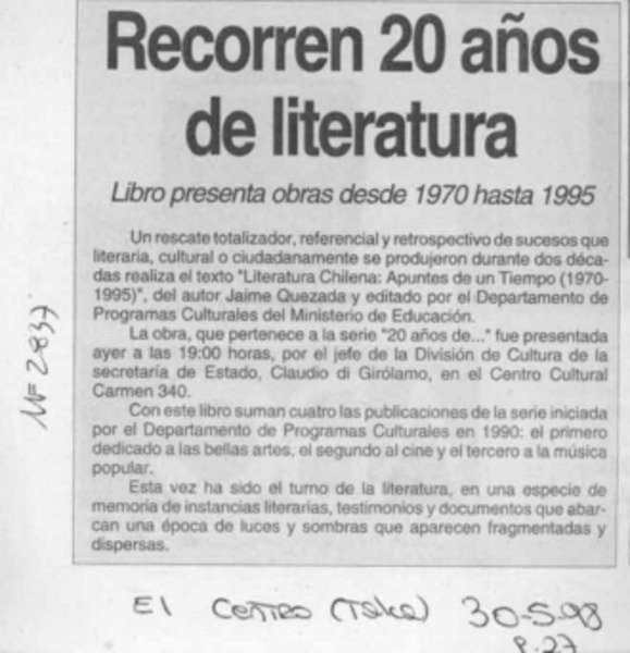 Veinte años de poesía en libro de profesor rural [artículo]