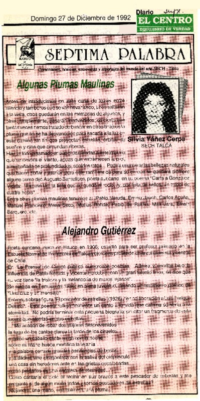 Algunas plumas maulinas [artículo] Silvia Yáñez Cerpa.