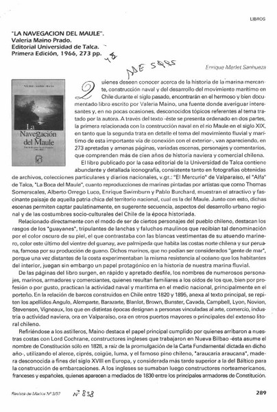 "La navegación del Maule" [artículo] Enrique Meriet Sanhueza.