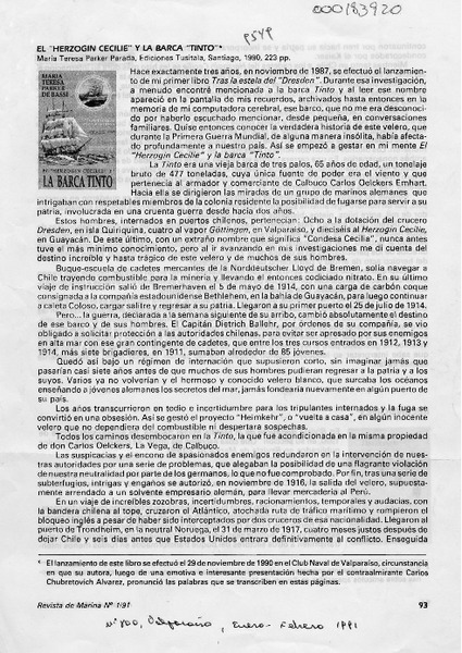 PARKER DE BASSI, MARIA TERESA - "HERZOGIN CECILIE" Y LA BARCA TINTO, EL