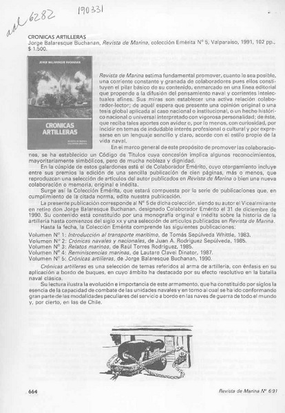 Autores chilenos - Balaresque Buchana, Jorge - Cronicas Artilleras