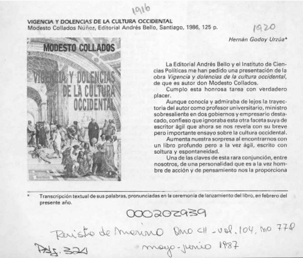 CORDOVEZ, ENRIQUE - ANCLAJE CULTURAL