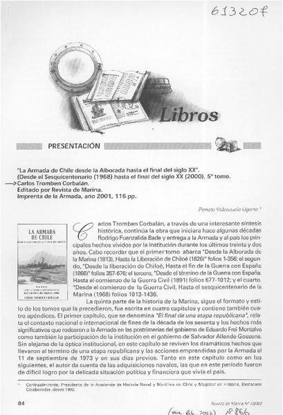 "La Armada de Chile" [artículo] Renato Valenzuela Ugarte