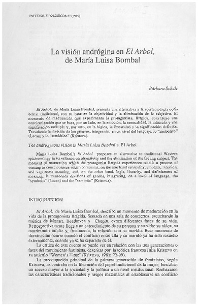 La visión andrógina en "El árbol" de María Luisa Bombal [artículo] Bárbara Schulz.