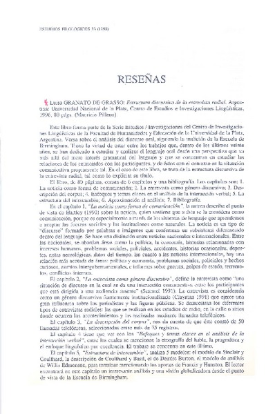 Estructura discursiva de la entrevista radial - Granato de Grasso, Luisa - Autores argentinos