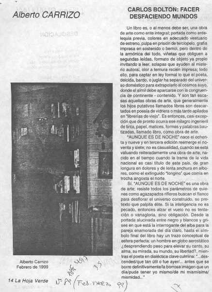 Carlos Bolton, facer desfaciendo mundos [artículo] Alberto Carrizo.