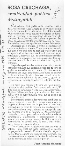 Rosa Cruchaga, creatividad poética distinguible [artículo] Juan Antonio Massone