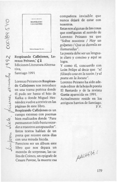 Respirando callejones [artículo] F. V.