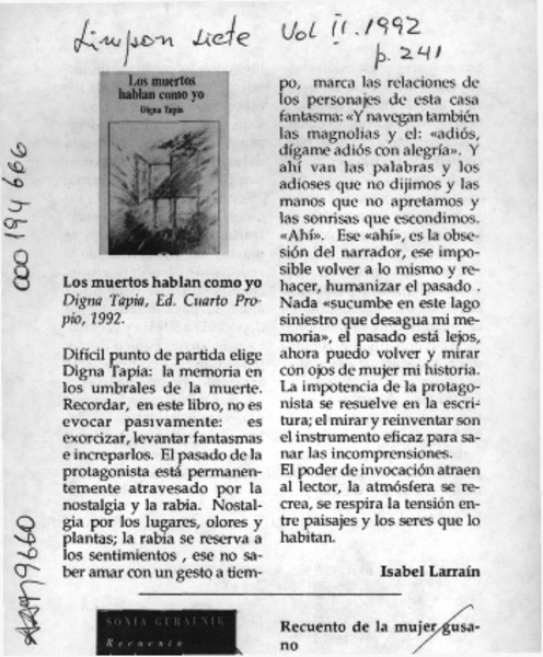 Los muertos hablan como yo [artículo] Isabel Larraín.