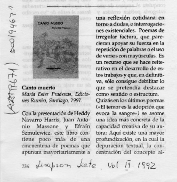 PRADENAS, MARIA ESTER - CANTO MUERTO