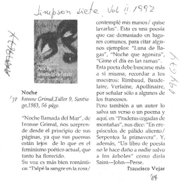 Noche [artículo] Francisco Véjar.