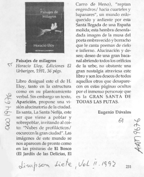 Paisajes de milagros [artículo] Eugenio Dávalos.