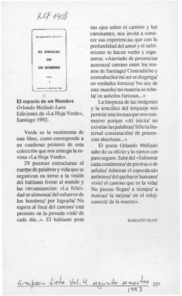 El espacio de un hombre [artículo] Horacio Eloy.