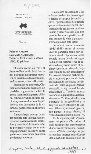RIEDEMANN, CLEMENTE - PRIMER ARQUEO
