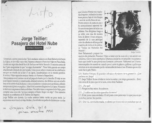 Jorge Teillier, pasajero del Hotel Nube [artículo] Esteban Navarro.