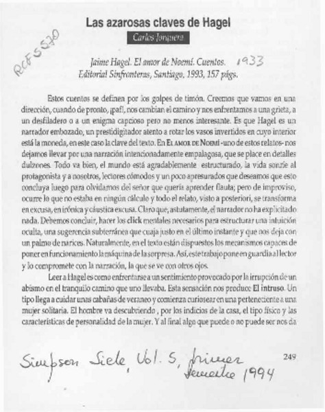 Cuentos cotidianos [artículo] Jaime Hagel Echeñique.