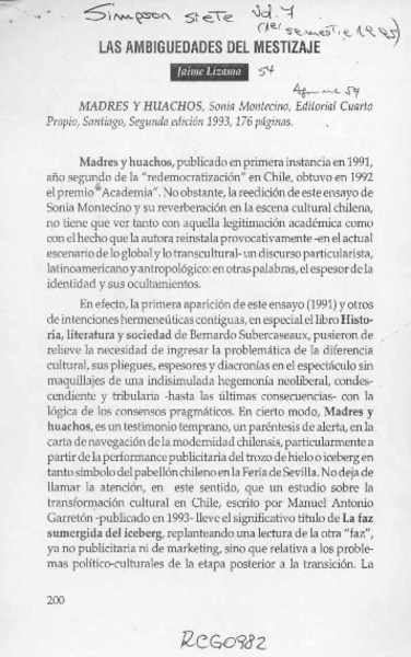 Las ambigüedades del mestizaje [artículo] Jaime Lizama.