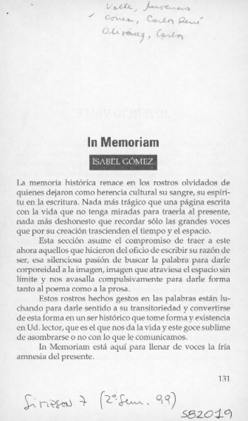 In memoriam [artículo] Isabel Gómez