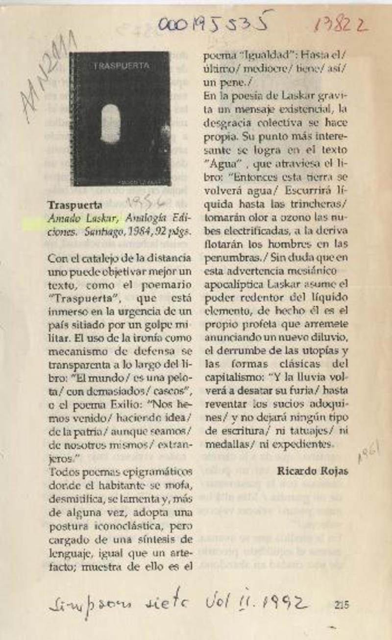 LASKAR, AMADO - TRASPUERTA