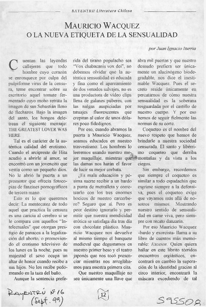 Mauricio Wacquez o la nueva etiqueta de la sensualidad [artículo] Juan Ignacio Iturria