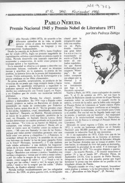 Pablo Neruda [artículo] Inés Pedraza Zúñiga.