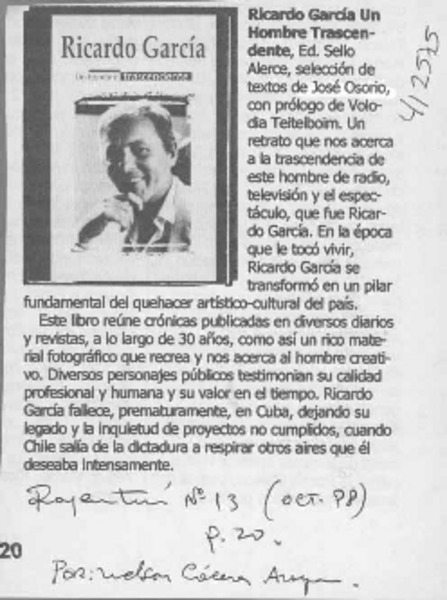 Ricardo García, un hombre trascendente [artículo] Nelson Cáceres Araya