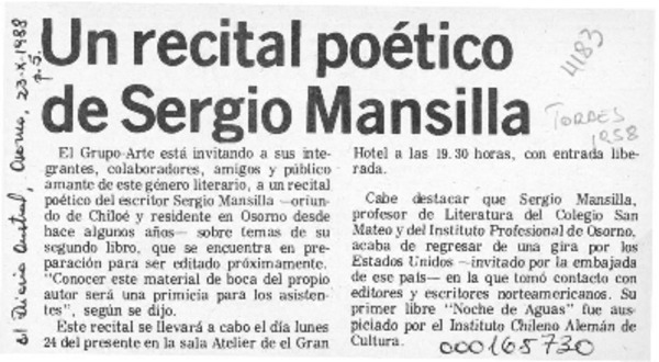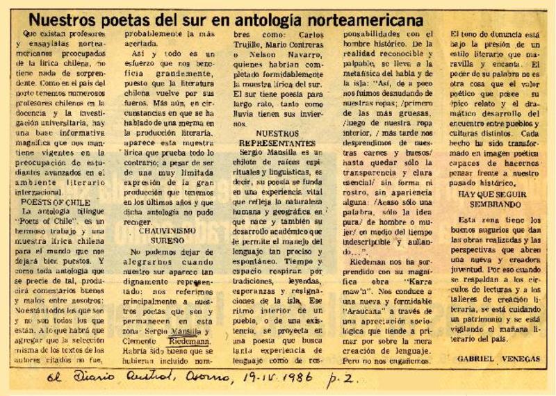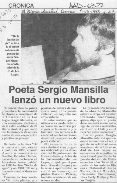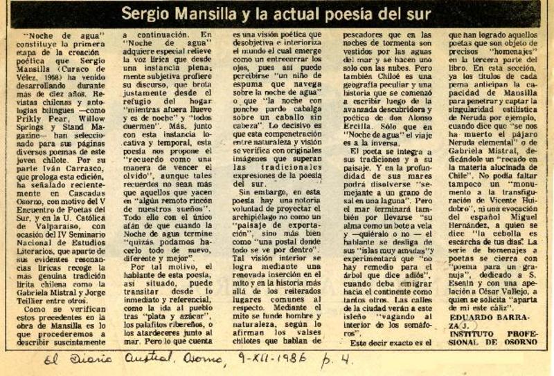 Sergio Mansilla y la actual poesía del sur [artículo] Eduardo Barraza J.