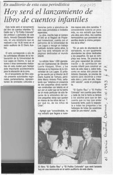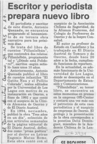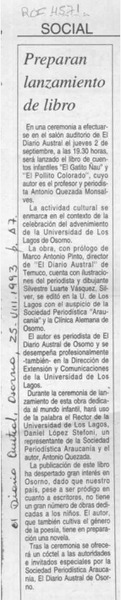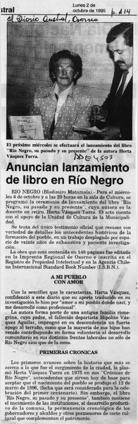 Anuncian lanzamiento de libro en Río Negro [artículo].