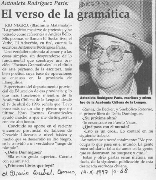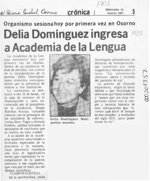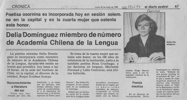 Delia Domínguez miembro de número de Academia Chilena de la Lengua [artículo].